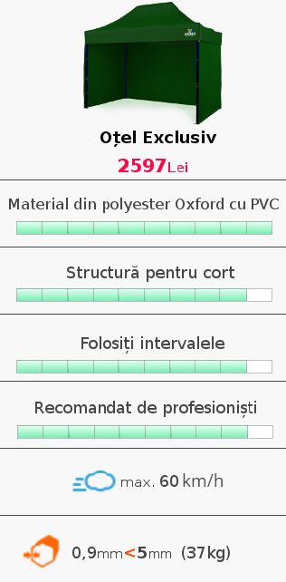Construcție durabilă din aluminiu sau oțel, material impermeabil, posibilitatea de a imprima un design atrăgător și logo-ul companiei. Disponibil în diferite culori și dimensiuni, ieftin și ușor de întreținut. Obțineți un pavilion promoțional și faceți din prezentarea dvs. o experiență de neuitat!